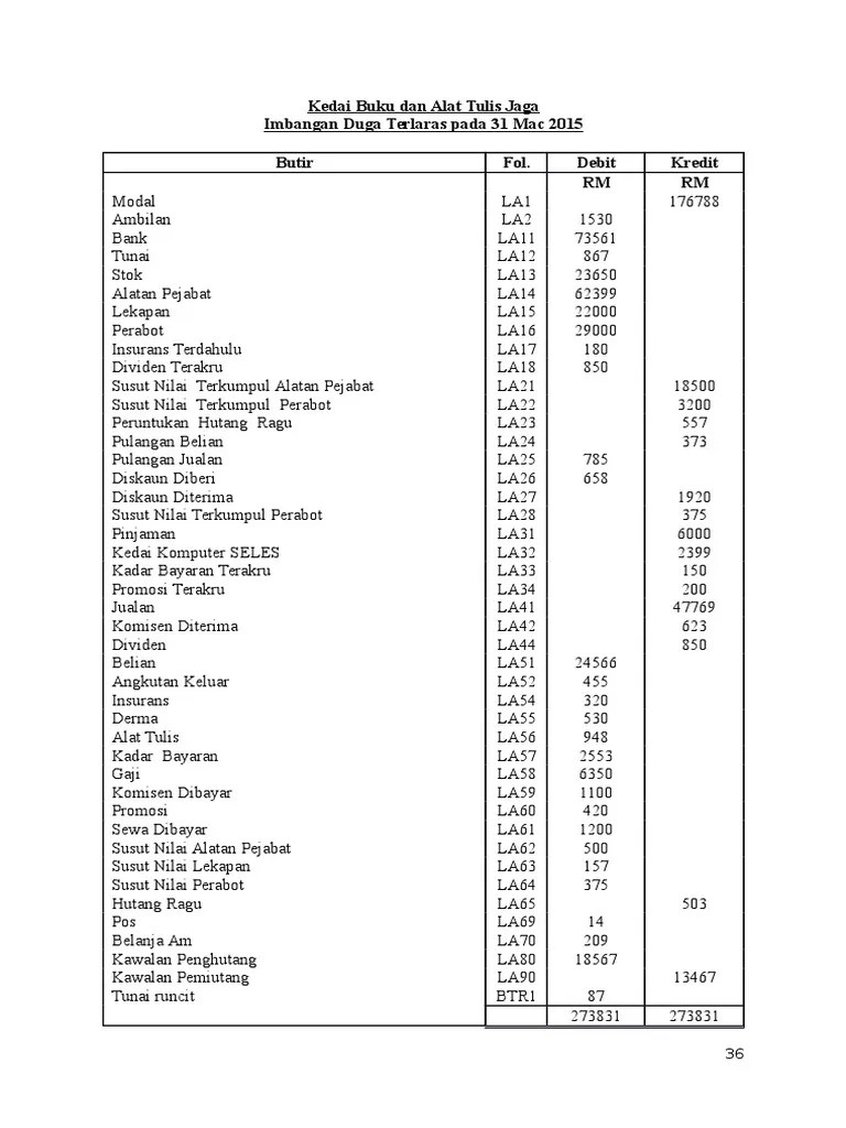 Accounting translation joanne seanindak kely jitilon istilah b.m. English to malay dictionary are ready to translate to malay any words with. 34,400 42,000 38,000 59,000 18,600 akaun/ account tunai di tangan cash in . Join the translation team and help with the translations! They have the same meaning. Of dahlia enterprise as at 30 june 2017 imbangan duga / trial balance rm akaun / accounts 84,750. General ledger in the account. Imbangan duga disediakan untuk menyemak ketepatan sistem catatan bergu. Lejar penghutang lejar pemiutang pembetulan kesilapan imbangan duga buku tunai . · jika imbangan duga tidak seimbang atau terdapat perbezaan antara jumlah bahagian debit .